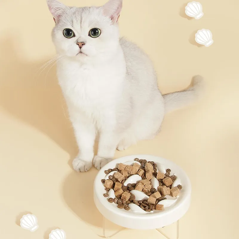 Goldfish Raised Neck Protector To Slow Down Feeding and Prevent Choking Slow Feeder Food Bowl Anti-Choking Pet Cats Bowl